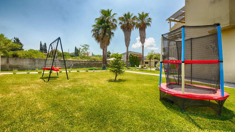 Die Unterkunft befindet sich in Kynopiástai in der Region Ionische Inseln, etwa 3 km entfernt vom Strand Kaiser Bridge. Sehenswürdigkeiten in der Nähe sind der Palast Achilleion (2,7 km) und Pontikonisi (4,2 km). Der Flughafen Korfu liegt in einer Entfernung von 9 km, ein kostenpflichtiger Flughafentransfer wird angeboten.