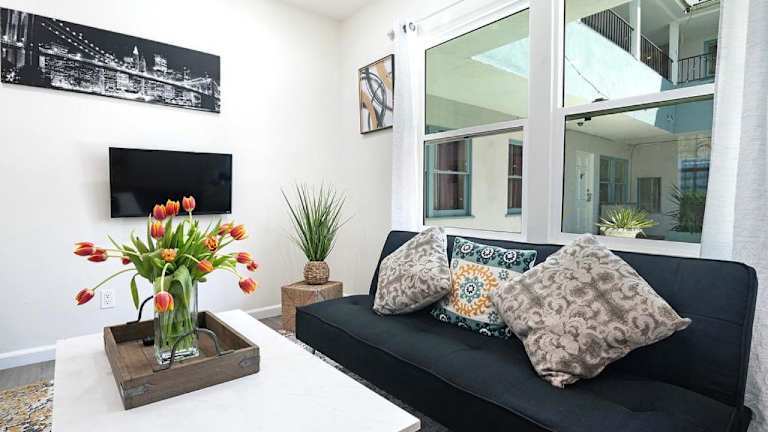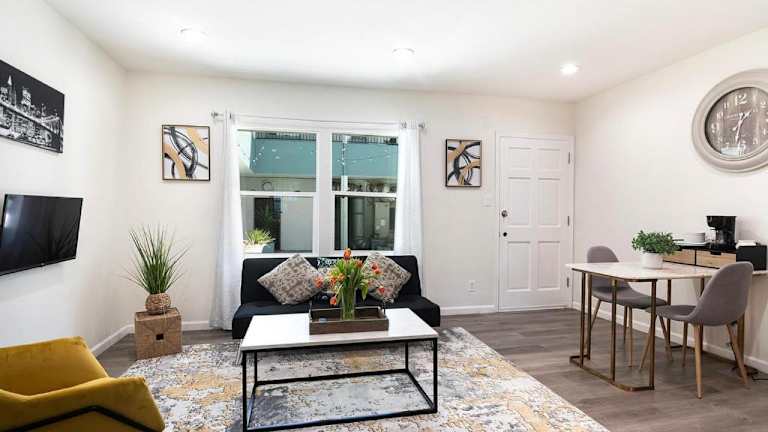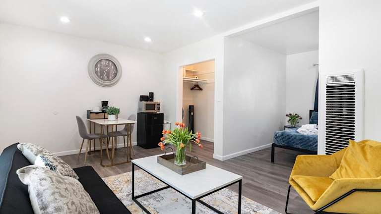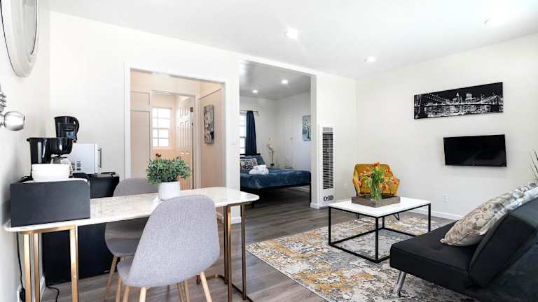 Das Cozy Ground-Floor Studio Near Beverly Hills Dining & Pico Blvd bietet eine klimatisierte Ferienwohnung mit einem Schlafzimmer und einer Küchenzeile. Die Unterkunft verfügt über kostenfreies WLAN sowie einen Privatparkplatz und ist als Nichtraucherunterkunft gestaltet.