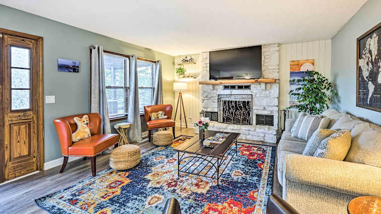 Das Cozy Holiday Island Home Hot Tub and Chiminea! befindet sich in Holiday Island und bietet eine günstige Lage, um die Umgebung zu erkunden. Das historische Viertel Eureka Springs ist nur 9,2 km entfernt und bietet viele Sehenswürdigkeiten und Unterhaltungsmöglichkeiten. Der Große Passionsspiel und der Höhlenpark Onyx sind ebenfalls in der Nähe und einen Besuch wert. Der Flughafen Branson liegt etwa 67 km entfernt und ist gut erreichbar.