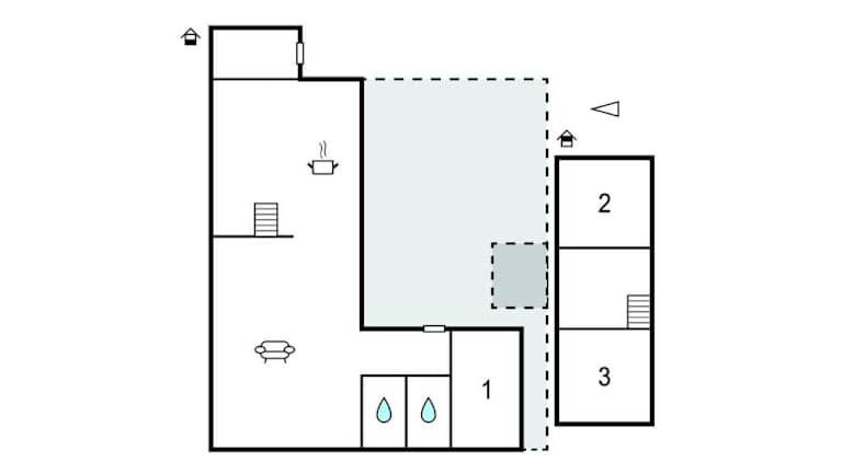 Das Ferienhaus umfasst 3 Schlafzimmer und verfügt über eine voll ausgestattete Küche mit Kühlschrank. Zudem gibt es ein Wohnzimmer mit TV. Es handelt sich um eine Nichtraucherunterkunft, die kostenlosen WLAN-Zugang und Heizungsanlagen bereitstellt.