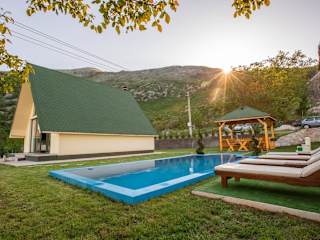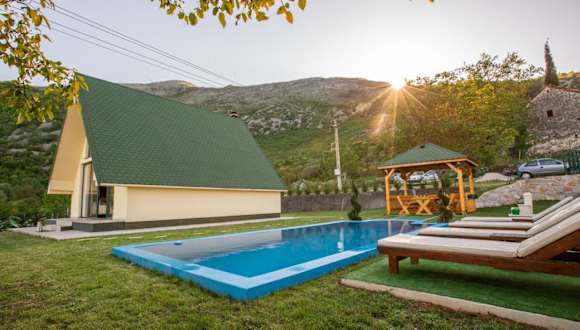 Das Cozy House Ostrog bietet zwei Schlafzimmer, ein Wohnzimmer und eine gut ausgestattete Küche. Mit einem Flachbild-Sat-TV und kostenfreien Handtüchern und Bettwäsche ist die Unterkunft komfortabel und gemütlich eingerichtet. Das Badezimmer verfügt über ein Bidet und eine Dusche. Die Gäste können auch die Terrasse und den eigenen Pool nutzen, um sich zu entspannen und die malerische Bergkulisse zu genießen.