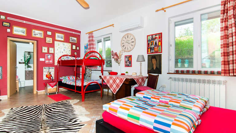 Im Cozy Istrian House können Sie Fahrräder ausleihen und die Umgebung erkunden. Unternehmen Sie eine Fahrt zum Aquapark Istralandia oder besuchen Sie historische Sehenswürdigkeiten wie die Burg San Giusto und die Piazza Unità d'Italia. Der Garten des Ferienhofs lädt auch zum Entspannen und Grillen ein.