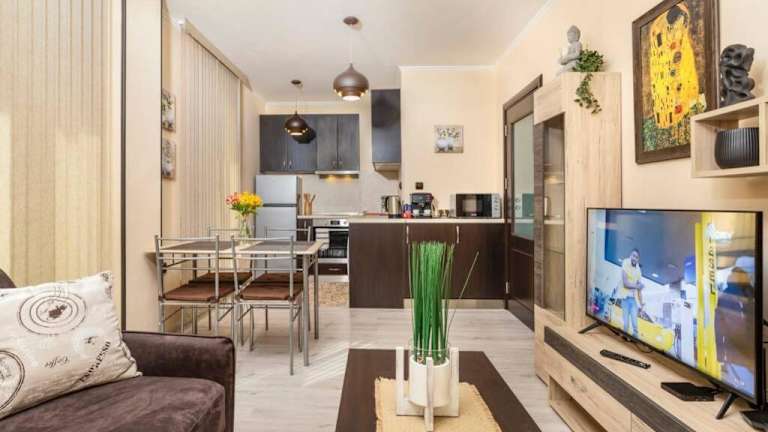 Das Cozy new Apartment 'Casa Vacanza' ✵ TOP CENTER ✵ in Plovdiv ist die ideale Unterkunft, um Ihren Aufenthalt in Plovdiv zu genießen. Das Apartment liegt in der Nähe der Internationalen Messe Plovdiv und bietet eine Terrasse, kostenfreies WLAN und einen Bankautomaten. Das klimatisierte Apartment verfügt über ein Schlafzimmer, ein Wohnzimmer, eine voll ausgestattete Küche und ein Badezimmer. Handtücher und Bettwäsche werden gestellt. In der Umgebung befinden sich verschiedene Sehenswürdigkeiten wie das römische Theater Plovdiv, Nebet Tepe und Hisar Kapia. Der internationale Flughafen Plovdiv ist nur 16 km entfernt.