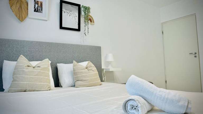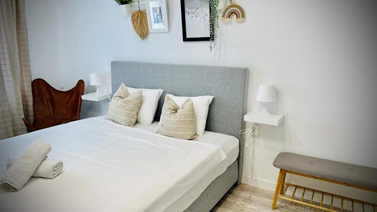 Das Apartment im Cozy Place to Stay - Self check in 24h bietet klimatisierte Unterkünfte mit einem Balkon, der einen schönen Blick auf den Garten bietet. Das Apartment verfügt über 2 Schlafzimmer, eine voll ausgestattete Küche mit Kühlschrank und Mikrowelle, einen Flachbild-TV und einen komfortablen Sitzbereich. Das Badezimmer ist mit einer Dusche ausgestattet. Handtücher und Bettwäsche werden gestellt, um Ihnen einen angenehmen Aufenthalt zu ermöglichen.