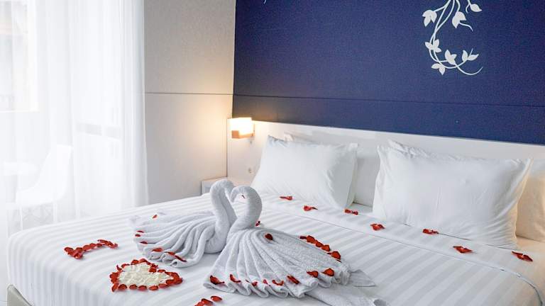 Die Zimmer sind klimatisiert und verfügen über einen Balkon. Jede Unterkunft ist mit einem Doppelbett, einem Sofabett, einer Minibar und einem Schreibtisch ausgestattet. In der Kochnische finden sich eine Mikrowelle sowie eine Tee- und Kaffeemaschine. Kommunikationsmöglichkeiten wie Telefon und TV-Gerät sind ebenfalls vorhanden. Im Badezimmer befindet sich eine Dusche und ein Haartrockner, sowie Kosmetikartikel. Es sind auch rollstuhlgerechte Zimmer mit barrierefreiem Bad verfügbar.