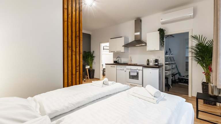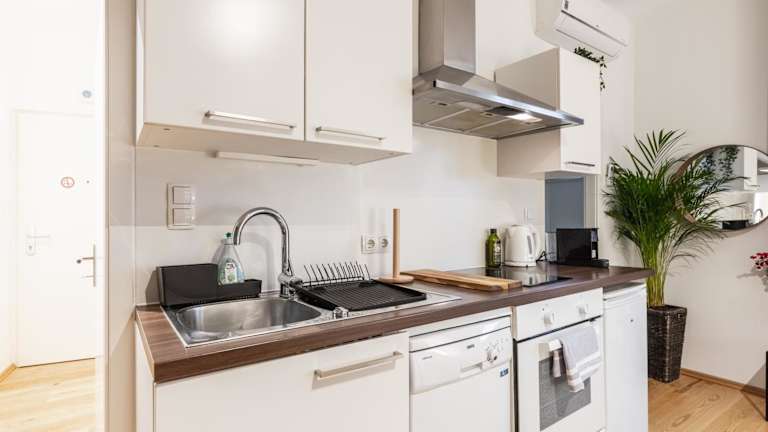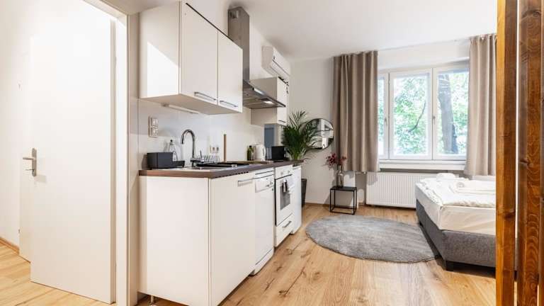Das Cozy Studio Apartment Located in Vienna's Vibrant City Center bietet kostenloses WLAN und Klimaanlage. Die Ferienwohnung verfügt über ein Schlafzimmer sowie ein Wohnzimmer mit einem Flachbild-TV und einer gut ausgestatteten Küche. Das Badezimmer ist mit einer Badewanne oder Dusche und einem Haartrockner ausgestattet.