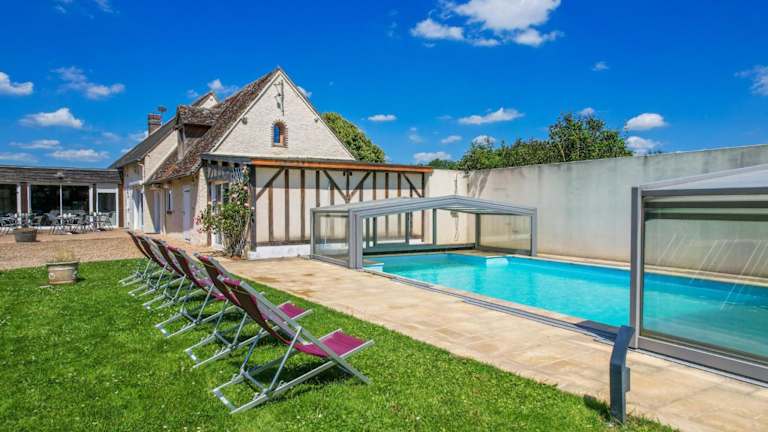 Die Villa bietet einen eigenen Pool, in dem Sie sich an warmen Tagen erfrischen können. Ein Kinderspielplatz steht ebenfalls zur Verfügung, um die kleinen Gäste zu unterhalten. In der Umgebung können Sie den Golfplatz Perche besuchen und eine Partie Golf spielen. Die Villa ist auch ein idealer Ausgangspunkt, um die Natur zu erkunden und Wanderungen oder Radtouren in der Umgebung zu unternehmen.
