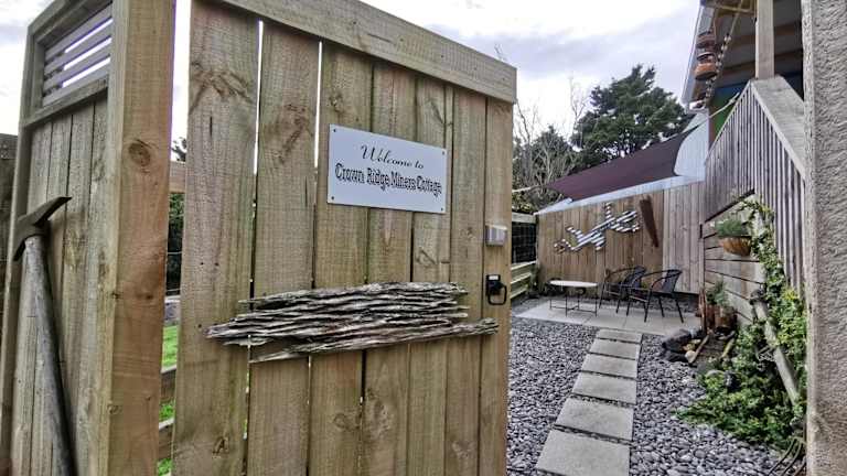 Crown Ridge Miners Cottage befindet sich in Karangahake, in der Region Waikato, umgeben von einer malerischen Berglandschaft.