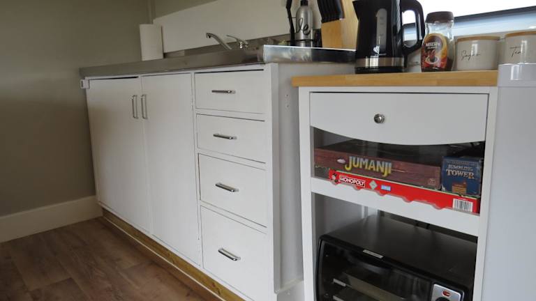 Das Ferienhaus besteht aus einem separaten Schlafzimmer und einem Badezimmer, das mit einem Haartrockner ausgestattet ist. Zudem gibt es einen Sitzbereich und ein Wohnzimmer. Handtücher und Bettwäsche werden bereitgestellt.