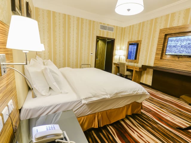 Das Crown Town Hotel in Jeddah bietet seinen Gästen komfortable Unterkünfte mit kostenfreiem WLAN und einem ganzjährig geöffneten Außenpool. Das hauseigene Restaurant lädt zu kulinarischen Genüssen ein und kostenfreie Privatparkplätze stehen zur Verfügung. Das Hotel ist ideal gelegen, nur 2,6 km vom King Fahad Fountain entfernt und in der Nähe von Sehenswürdigkeiten wie dem islamischen Hafen von Jeddah und der Al-Andalus-Mall. Mit einer 24-Stunden-Rezeption steht das freundliche Personal jederzeit zur Verfügung, um den Gästen behilflich zu sein. Der internationale Flughafen King Abdulaziz ist ebenfalls gut erreichbar, nur 18 km entfernt.