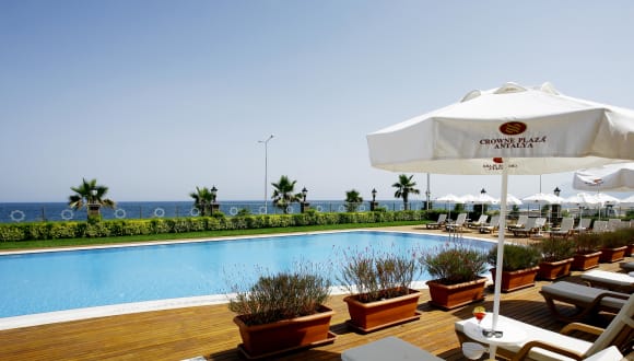 Das Crowne Plaza Antalya bietet luxuriöse Unterkünfte mit Blick auf das Mittelmeer und zeichnet sich durch ein ansprechendes Ambiente aus. Die Unterkunft umfasst 194 Zimmer und 21 Junior-Suiten. Das Hotel verfügt über einen Empfangsbereich mit Check-in/out-Service, einen TV-Raum und einen minimarkt. Optional stehen Parkmöglichkeiten in einer Garage gegen Gebühr zur Verfügung. Das Hotel bietet außerdem ein umfangreiches Serviceangebot, einschließlich Autovermietung, Transferservice und einen 24-Stunden-Zimmerservice. Das Hotel ist für Gäste mit eingeschränkter Mobilität teilweise geeignet und umfasst behindertengerechte Einrichtungen.