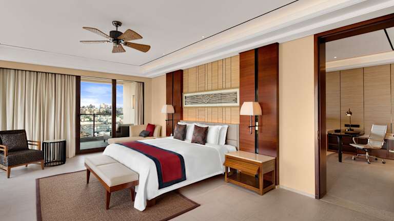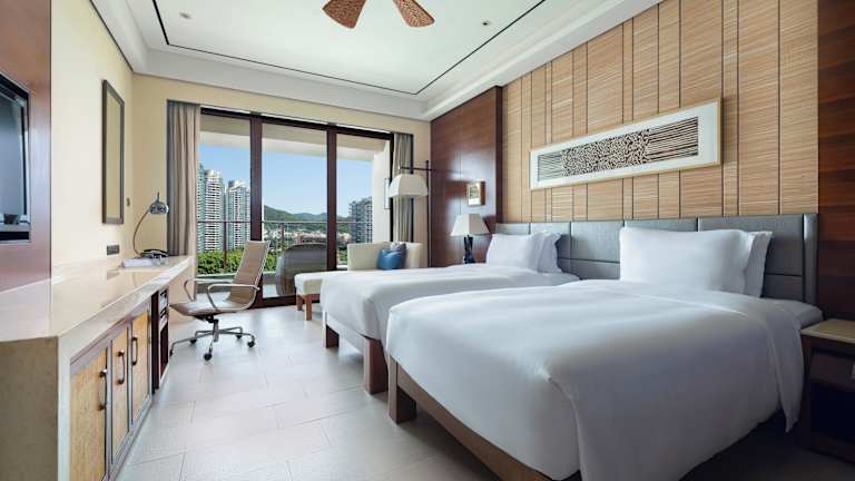 Die Zimmer im Crowne Plaza Sanya City Center sind modern eingerichtet und verfügen über einen 42-Zoll-LCD-Kabel-TV, eine Minibar, einen Safe und gemütliche Sitzbereiche mit einem Sofa. Im Badezimmer finden Sie einen Haartrockner und kostenfreie Pflegeprodukte. Jedes Zimmer verfügt zudem über einen eigenen Balkon mit Blick auf den Fluss Linchun oder die Skyline von Sanya.