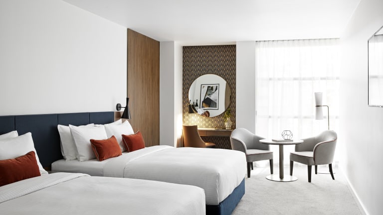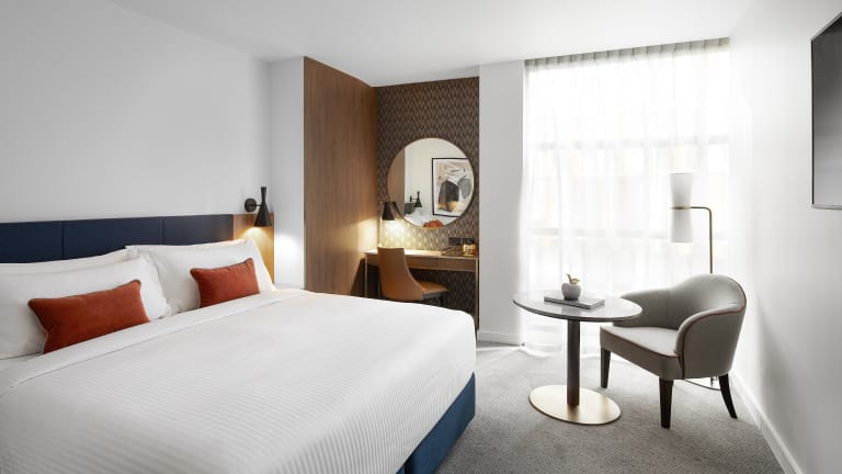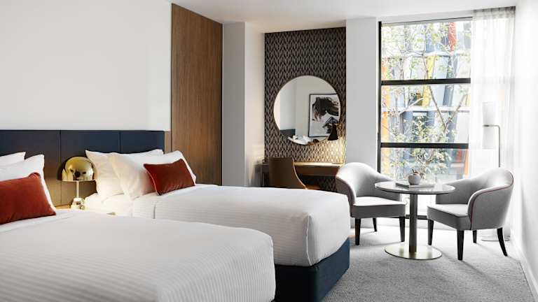 Die Zimmer im Crowne Plaza Sydney Darling Harbour sind geräumig und bieten den Gästen eine komfortable Unterkunft. Sie sind modern eingerichtet und verfügen über ein Marmorbad mit einer ebenerdigen Dusche, Bademänteln und Bio-Pflegeprodukten. Einige Zimmer bieten auch eine separate Badewanne. Alle Zimmer sind mit modernem Dekor und Art-Deco-Akzenten ausgestattet und verfügen über Sofabereiche zum Entspannen, Chromecast-Technologie, kabellose Ladegeräte und Bluetooth-Lautsprecher.