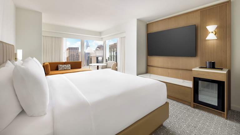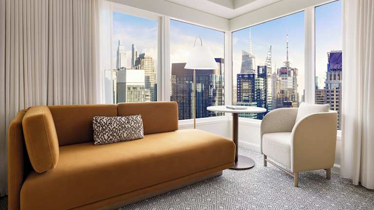 Die Zimmer im Crowne Plaza Times Square bieten Ihnen modernen Komfort und sind mit Flachbild-Kabel-TV und kostenlosem WLAN ausgestattet. Jedes Zimmer verfügt über eine individuell regulierbare Klimaanlage und Heizung sowie einen Safe und einen Schreibtisch. Genießen Sie Ihren Aufenthalt in einem der 770 Zimmer in diesem 46-stöckigen Hotel.