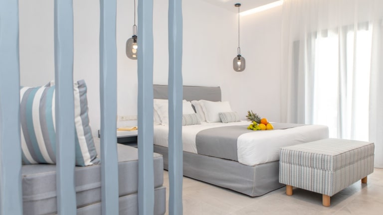 Die klimatisierten Zimmer der Crystal Mare Suites sind geschmackvoll eingerichtet und bieten allen Komfort, den Sie für einen angenehmen Aufenthalt benötigen. Jedes Zimmer verfügt über einen Schreibtisch, eine Kaffeemaschine, einen Kühlschrank, einen Safe und einen Flachbild-TV. Das private Badezimmer ist mit einer Dusche ausgestattet. Einige Zimmer bieten einen Balkon mit Gartenblick. Bettwäsche und Handtücher sind ebenfalls vorhanden.