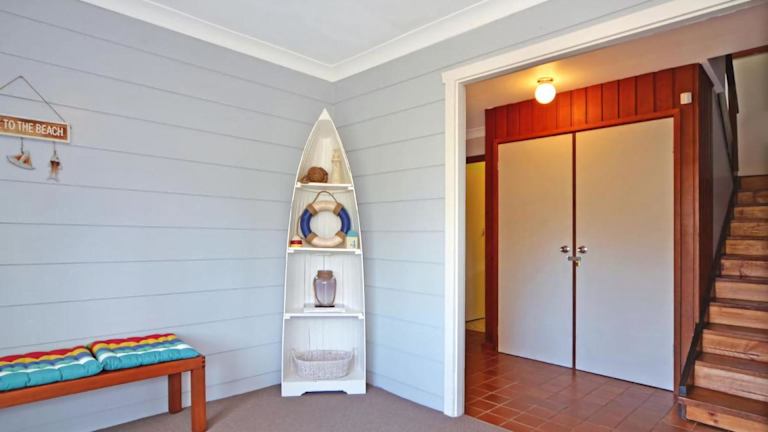 Das Crystal Waters Beach House - Belle Escapes Jervis Bay bietet Übernachtungsmöglichkeiten in einem Ferienhaus mit einem Fitnesscenter, Grillmöglichkeiten und kostenlosem WLAN. Das Ferienhaus verfügt über einen Balkon.