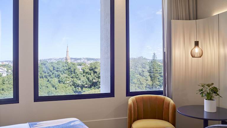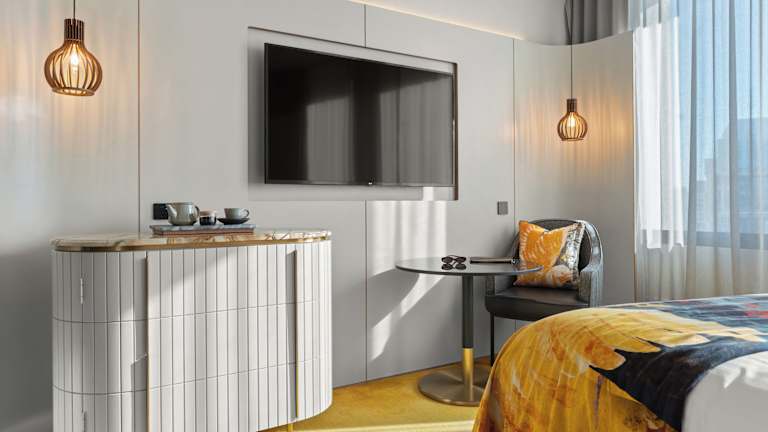 Die Zimmer sind klimatisiert und mit einer Heizung ausgestattet. Zur Standardausstattung gehören Teppichböden, ein Doppel-, Queensize- oder Kingsize-Bett, ein Safe, eine Minibar, ein Schreibtisch sowie eine Tee-/Kaffeemaschine. Weiterhin stehen ein Telefon, ein TV-Gerät, ein Radio und WiFi zur Verfügung. Die Badezimmer sind mit einer Dusche und einer Badewanne sowie einem Haartrockner und Bademänteln ausgestattet. Es sind auch rollstuhlgerechte Zimmer buchbar.