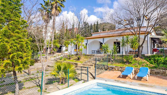 Das Ferienhaus verfügt über fünf Schlafzimmer und drei Badezimmer. Es sind Bettwäsche, Handtücher sowie ein TV vorhanden. Die Küche ist voll ausgestattet und die Terrasse bietet einen Blick auf die Berge.