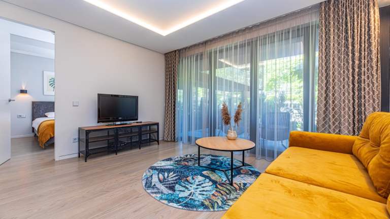 Die Ferienwohnung verfügt über ein Schlafzimmer, ein Wohnzimmer, einen Flachbild-TV und eine gut ausgestattete Küche mit Kühlschrank und Ofen. Zudem ist ein Badezimmer mit Dusche vorhanden.
