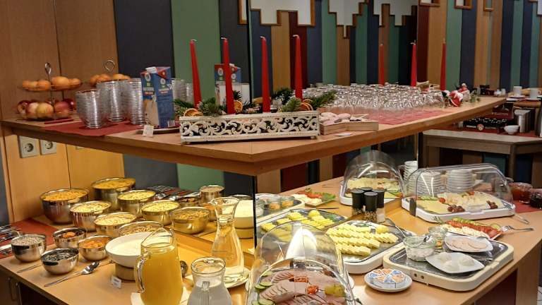 Das CVJM Hotel am Wollmarkt verwöhnt seine Gäste jeden Morgen mit einem reichhaltigen Frühstücksbuffet. Hier können die Gäste aus einer Vielzahl von warmen und kalten Speisen wählen und sich für den Tag stärken. In der näheren Umgebung des Hotels gibt es auch eine gute Auswahl an Cafés und Restaurants, in denen die Gäste lokale Spezialitäten und internationale Küche genießen können.