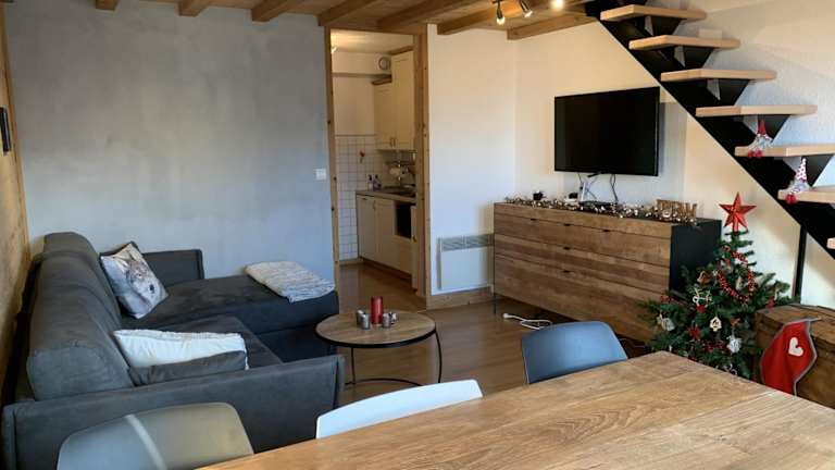 CX116 - Duplex 6 pers Pied de pistes ist eine Unterkunft mit einem TV und einem Balkon, von dem aus Gäste einen Blick auf die Berge genießen können. Es handelt sich um ein Duplex für bis zu sechs Personen.