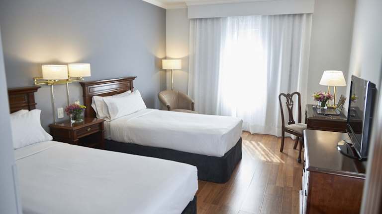 Die Zimmer sind mit einer individuell steuerbaren Klimaanlage und Heizung ausgestattet. Zu den Annehmlichkeiten gehören ein Doppelbett oder Kingsize-Bett, Safe, Minibar, Schreibtisch sowie eine Tee-/Kaffeemaschine. Sie verfügen ebenso über ein Telefon mit Direktwahl, einen TV mit Satelliten-/Kabelempfang und WLAN ohne Gebühr. Die Badezimmer sind mit Dusche und Badewanne ausgestattet und bieten einen Haartrockner sowie Kosmetikartikel. Es sind auch barrierefreie Zimmer verfügbar.