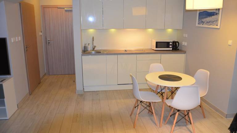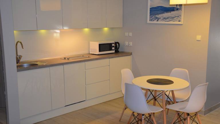 Die Zimmer in der Unterkunft Czarna Góra Haven verfügen über einen Balkon mit Bergblick, einen Sitzbereich, einen Flachbild-TV und eine voll ausgestattete Küche, die mit einem Kühlschrank, einem Geschirrspüler, einer Mikrowelle und einer Herdplatte ausgestattet ist. Jedes Zimmer hat ein eigenes Badezimmer mit Dusche und Haartrockner.