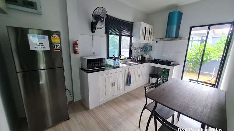Das Ferienhaus umfasst 2 Schlafzimmer, ein Wohnzimmer und eine voll ausgestattete Küche, die mit einem Kühlschrank und einem Wasserkocher ausgestattet ist. Es stehen 2 Badezimmer zur Verfügung, die jeweils mit einer Dusche und einem Haartrockner ausgestattet sind. Handtücher und Bettwäsche werden bereitgestellt.