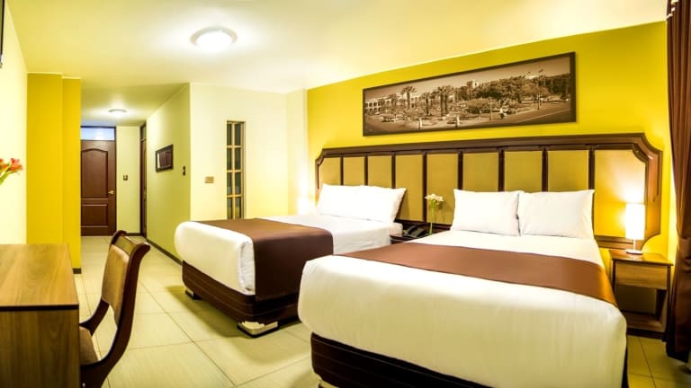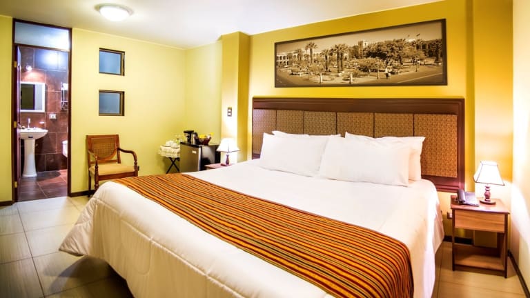 Das D'Carlo Class ist ein Hotel in idealer Lage, nur 700 m vom Hauptplatz von Arequipa entfernt. Hier erwartet Sie ein komfortabler Aufenthalt mit kostenfreiem WLAN und einem leckeren Frühstück. Das Hotel bietet zudem eine 24-Stunden-Rezeption, eine Terrasse und kostenlose Parkplätze. Entdecken Sie die Schönheit von Arequipa und genießen Sie Ihren Aufenthalt im D'Carlo Class.