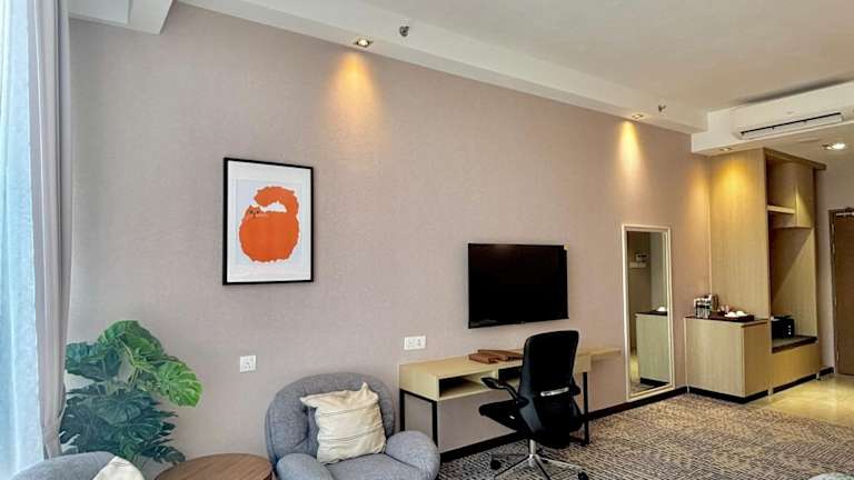 Die 96 klimatisierten Zimmer des D Elegance Grand Bandar Seri Alam sind komfortabel und gemütlich eingerichtet. Jedes Zimmer verfügt über eine Minibar und einen LED-Fernseher. Ein kostenloser WLAN-Internetzugang ist ebenfalls vorhanden. Die Badezimmer sind mit kostenlosen Toilettenartikeln und Bidets ausgestattet. Auf Anfrage werden die Zimmer täglich gereinigt.