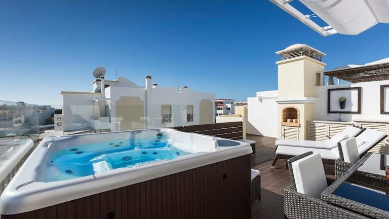 Nach einem Tag am Strand können Sie sich in Ihrem Apartment im Whirlpool entspannen und den Blick auf Albufeira genießen. Das D_Loft bietet auch einen Shuttleservice auf Anfrage und gegen Aufpreis, so dass Sie bequem die Umgebung erkunden können.