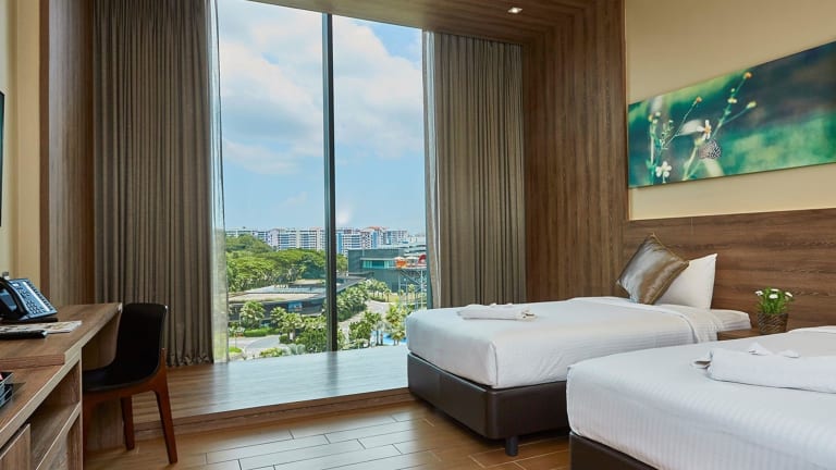Das D'Resort @ Downtown East in Singapur ist ein ruhiges und naturnahes Resort, das sich perfekt für einen entspannten Aufenthalt fernab vom Stadtleben eignet. Das Resort bietet eine Vielzahl von Annehmlichkeiten, darunter ein Wasserpark, ein hauseigenes Restaurant und kostenloses WLAN. Die Zimmer sind klimatisiert und verfügen über einen Flachbild-TV und ein eigenes Bad. Die Unterkunft liegt in der Nähe von Sehenswürdigkeiten wie der Singapore Expo und dem Fährterminal Changi Point. Der Flughafen Singapur ist ebenfalls gut erreichbar.