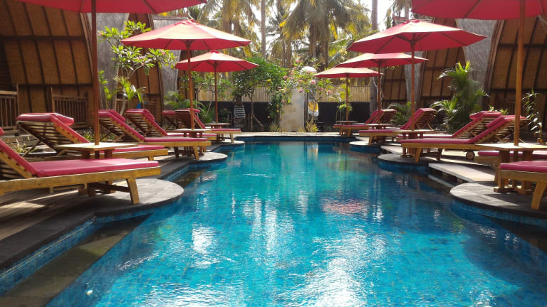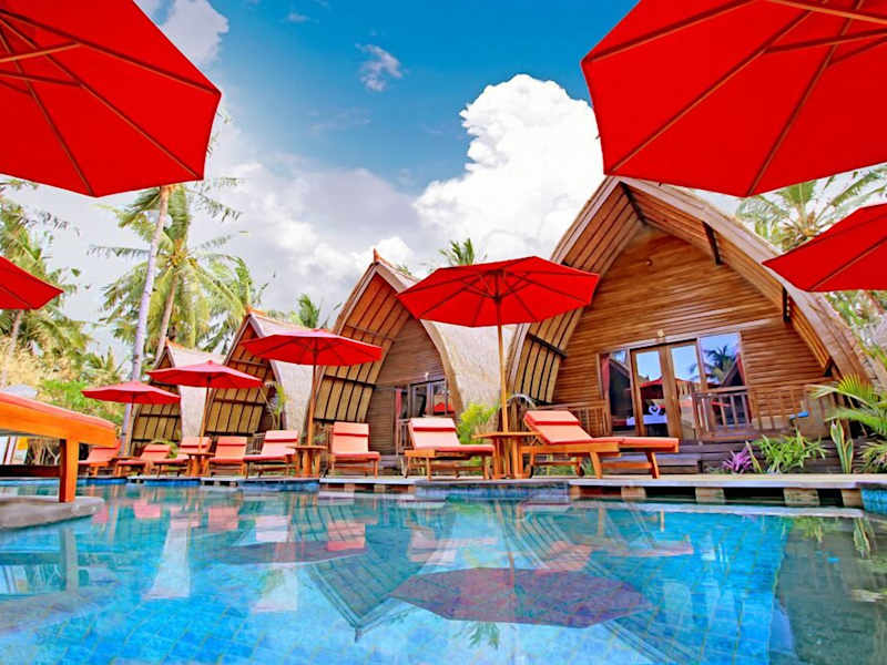 Das D'Wahana Resort auf der wunderschönen Insel Gili Trawangan bietet seinen Gästen einen entspannten Aufenthalt in traditionellen Holzbungalows, umgeben von einem üppigen tropischen Garten. Genießen Sie den Außenpool und das hoteleigene Restaurant, das eine Vielzahl von indonesischen und westlichen Gerichten serviert. Das Resort liegt in der Nähe von beliebten Sehenswürdigkeiten wie dem Sunset Point und der Schildkrötenaufzuchtstation.