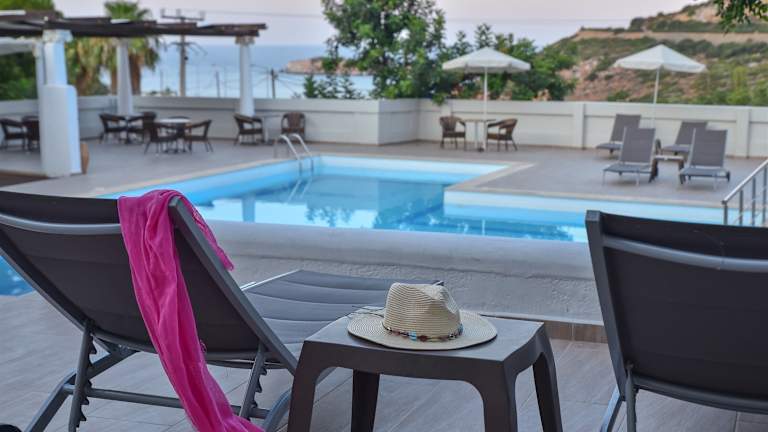 Das Bali Mare Village befindet sich auf einem Hügel über dem Meer und bietet Ausblicke auf das Mittelmeer und die Talea-Berge. Der nächste Strand liegt ca. 200 m entfernt, das Stadtzentrum ist in etwa 800 m erreichbar. Eine Bushaltestelle befindet sich in der Nähe, und es gibt einen Resort-Zug, der zu wichtigen Punkten im Dorf fährt.