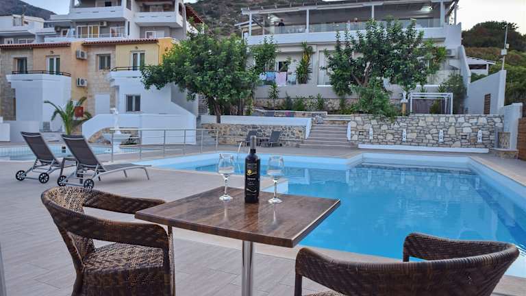 Die Zimmer sind mit einer Küche, Klimaanlage, einem Balkon oder einer Terrasse mit Bergblick sowie einem Badezimmer ausgestattet. Zur Einrichtung gehören ein Doppelbett oder Sofabett, ein Safe, eine Minibar und eine Kochnische mit Kühlschrank, Herd und Kaffeemaschine. Zu den Annehmlichkeiten zählen TV, kostenloses WLAN, Haartrockner, Kosmetikartikel und eine Auswahl an Handtüchern.