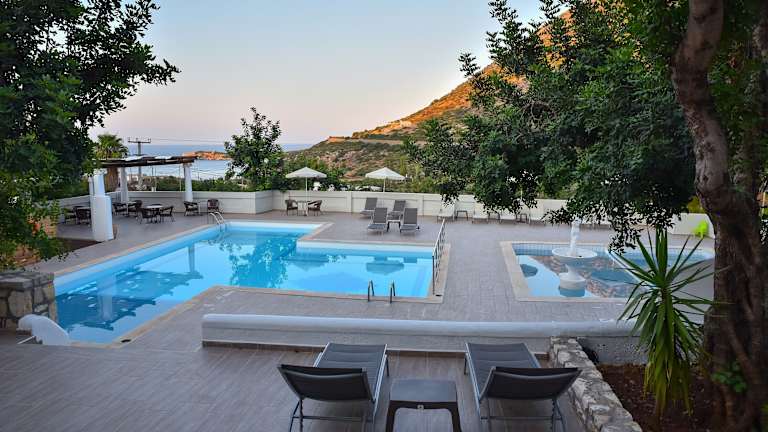 Das Hotel bietet 5 Junior-Suiten, 30 Suiten und 15 Apartments. Zu den Annehmlichkeiten zählen eine 24-Stunden-Rezeption, Gepäckaufbewahrung, Wechselstube und WLAN in den öffentlichen Bereichen. Weitere Angebote umfassen einen Supermarkt, einen Spielplatz, einen TV-Raum, Garagenplätze und einen Transferservice. Der Garten lädt zur Entspannung ein, während ein Fahrradverleih den Gästen ermöglicht, die Umgebung zu erkunden.