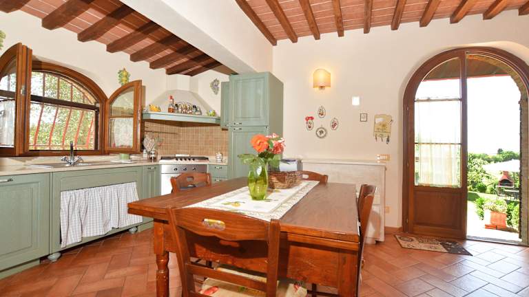 Das Landhaus verfügt über 3 Schlafzimmer, ein Wohnzimmer und eine vollständig ausgestattete Küche mit Kühlschrank und Kaffeemaschine. Die zwei Badezimmer sind mit Bidet und Dusche ausgestattet. Handtücher und Bettwäsche werden bereitgestellt, und die Unterkunft ist klimatisiert, um den Komfort der Gäste zu gewährleisten.