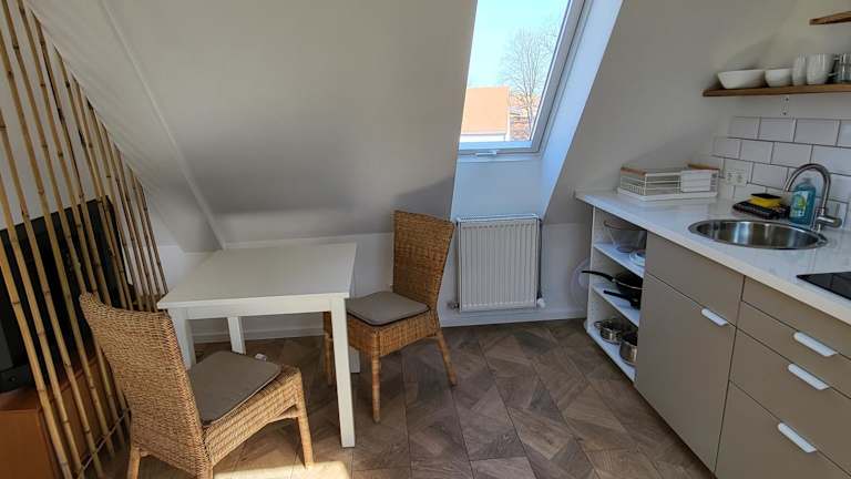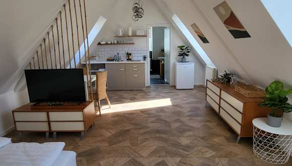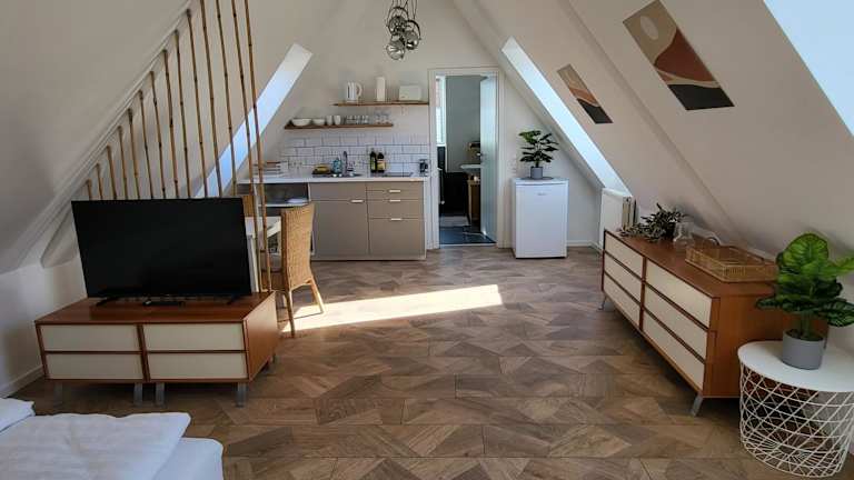 Sunny Attic Apartment bietet eine klimatisierte Ferienwohnung mit einem Privatparkplatz und kostenlosem WLAN.