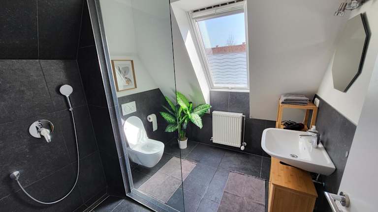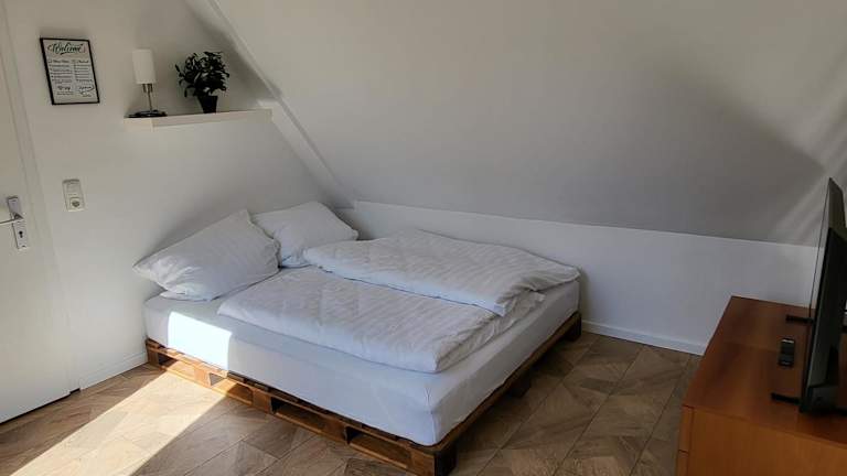 Die Ferienwohnung beinhaltet 1 Schlafzimmer, 1 Badezimmer mit Dusche, Haartrockner und Waschmaschine. Handtücher und Bettwäsche sind ebenfalls verfügbar.