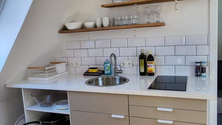Die Unterkunft verfügt über eine Küchenzeile mit einem Kühlschrank und einer Herdplatte.