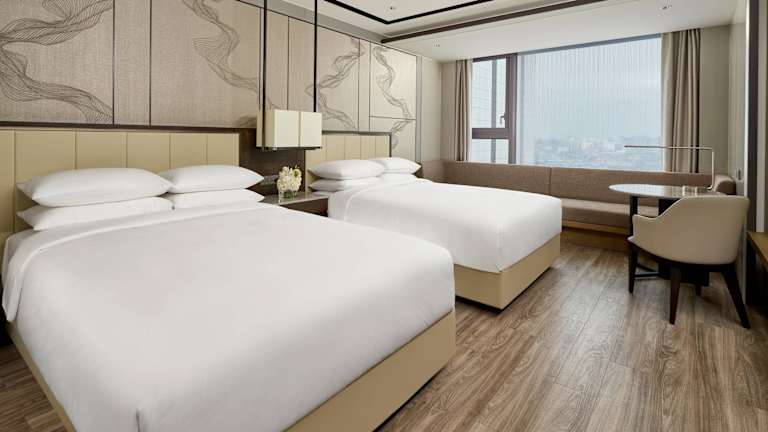 Die Zimmer im Daegu Marriott Hotel sind komfortabel und bieten eine gute Ausstattung. Sie verfügen über einen Kleiderschrank, einen Wasserkocher, eine Minibar, einen Safe, einen Flachbild-TV und ein eigenes Bad mit Dusche. Es gibt auch rollstuhlgerechte Zimmer mit barrierefreiem Bad.