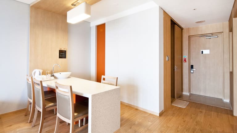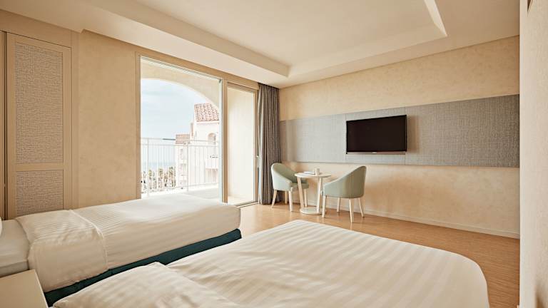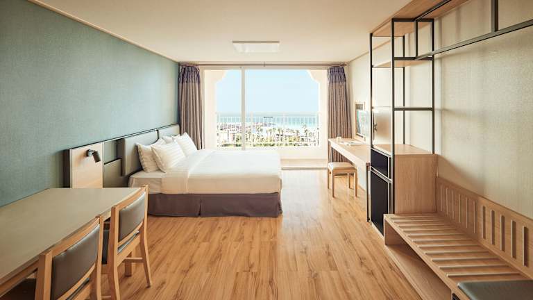 Das Daemyung Resort Jeju bietet insgesamt 398 Zimmer, die alle mit Klimaanlage, Heizung und einem Balkon ausgestattet sind. Die Zimmer sind komfortabel eingerichtet und verfügen über Annehmlichkeiten wie eine Minibar, eine Kochnische mit Kühlschrank, Mikrowelle und Tee-/Kaffeemaschine sowie einen Flachbildfernseher und WLAN. Für Familien mit Kindern stehen auch Familienzimmer zur Verfügung.