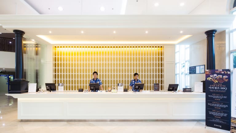 Das Daemyung Resort Jeju in Jeju City bietet seinen Gästen einen angenehmen Aufenthalt auf der Insel Jeju-do. Mit seinen komfortablen Zimmern, freundlichem Service und verschiedenen Einrichtungen wie Restaurants, einem Fitnessstudio und einem Spa, ist das Hotel ideal für Reisende, die Entspannung und Erholung suchen.