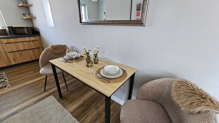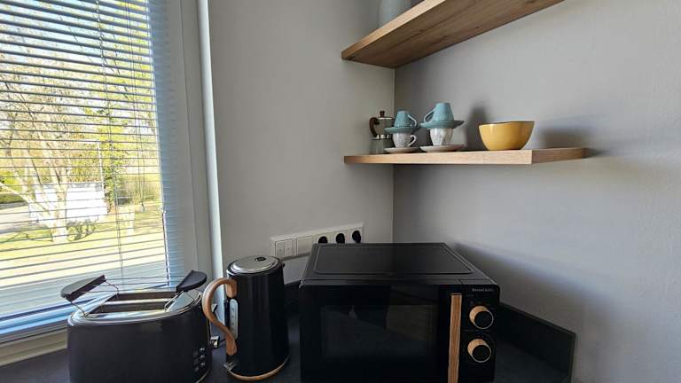 Die Ferienwohnung verfügt über ein Schlafzimmer und einen Flachbild-TV mit Satellitenkanälen. Die gut ausgestattete Küche ist mit einem Kühlschrank und einem Geschirrspüler ausgestattet. Es gibt ein Badezimmer mit Dusche. Handtücher und Bettwäsche werden bereitgestellt. Die Unterkunft ist Nichtraucherzimmer und verfügt über WLAN sowie kostenlosen Privatparkplatz.