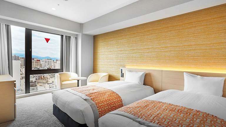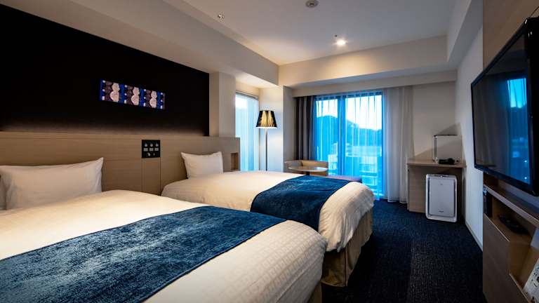 Die Zimmer im Daiwa Roynet Hotel Matsuyama sind komfortabel und bieten Annehmlichkeiten wie Klimaanlage, ein Doppelbett, einen Kühlschrank und eine Tee-/Kaffeemaschine. Rollstuhlgerechte Zimmer mit barrierefreiem Bad sind ebenfalls verfügbar.
