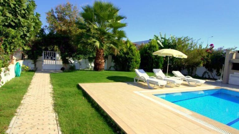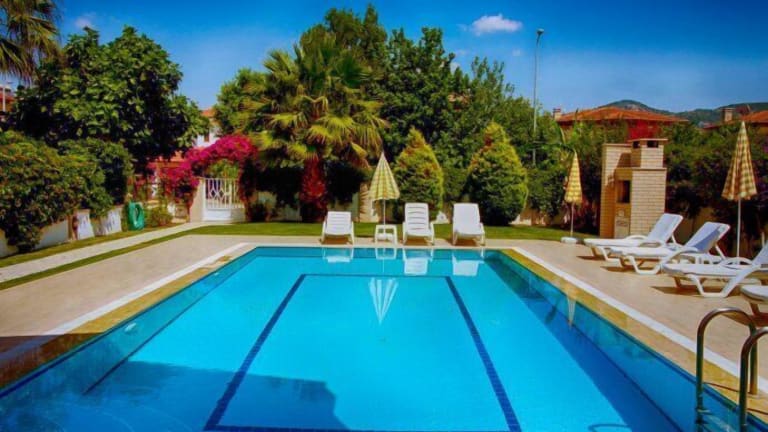 Der 520 m2 große Garten und der 50 m2 große Außenpool bieten Ihnen die Möglichkeit, sich im Freien zu entspannen und die Sonne zu genießen. Erkunden Sie die Umgebung und besichtigen Sie die beeindruckenden Felsengräber von Dalyan, die nur wenige hundert Meter von der Villa entfernt liegen.