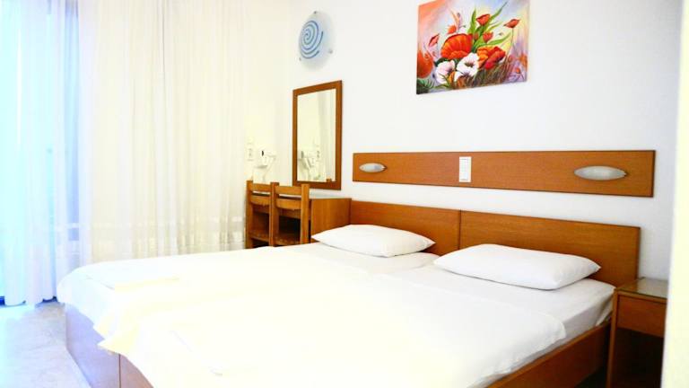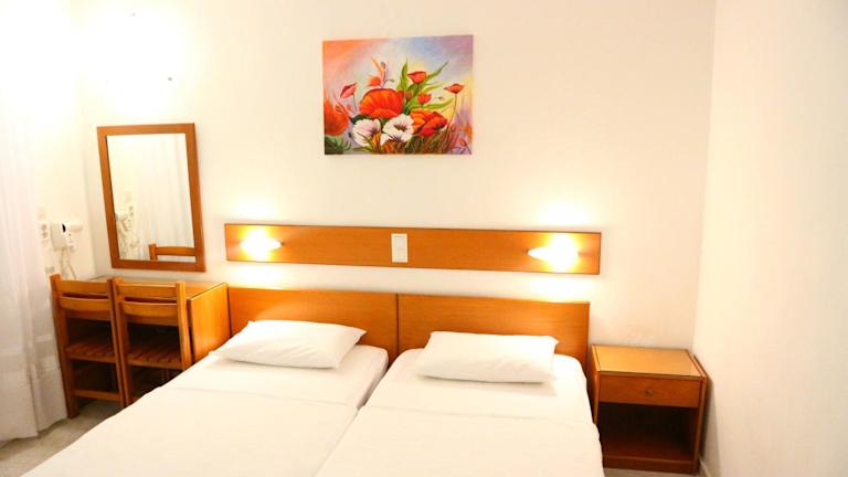Die Zimmer des Danae Hotels verfügen über ein eigenes Badezimmer, sind klimatisiert und mit einem Balkon ausgestattet. Zur Ausstattung gehören weiterhin eine Kaffeemaschine sowie Bettwäsche und Handtücher. Die Reinigung und Wäsche erfolgen nach den Richtlinien der örtlichen Behörden, um Hygiene und Sicherheit sicherzustellen.