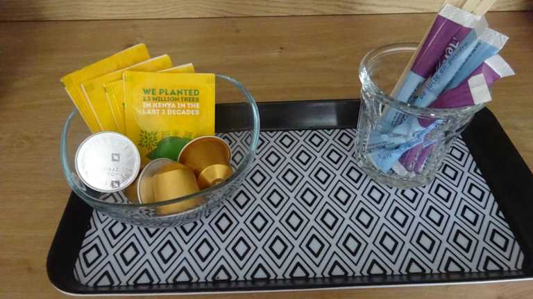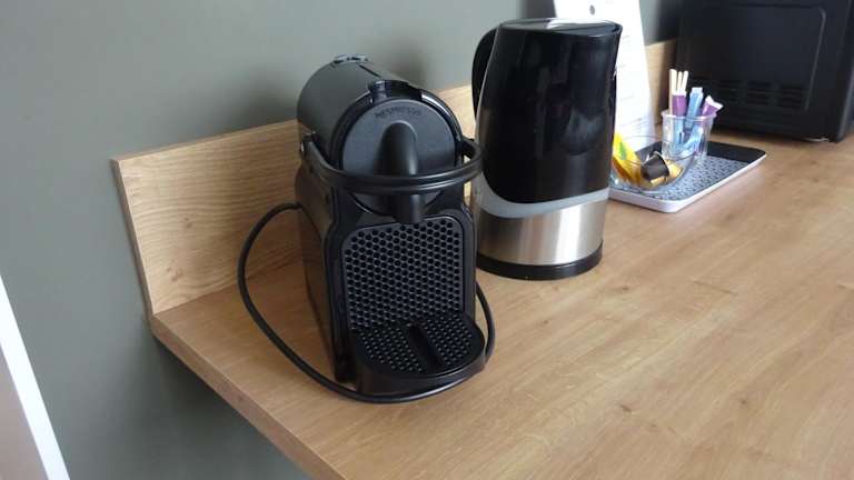 Die Ferienwohnung ist mit einem Flachbild-TV ausgestattet. Die Küchenzeile beinhaltet einen Kühlschrank, eine Mikrowelle, eine Kaffeemaschine und einen Wasserkocher.