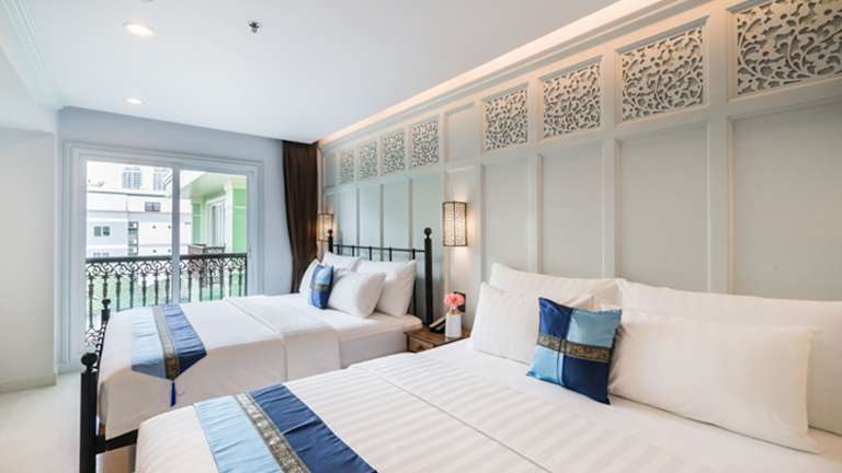 Das Hotel liegt direkt an der Khaosan Road in Bangkok, bekannt für ihr lebhaftes Nachtleben, mit zahlreichen Imbissständen, Restaurants, Geschäften und Geldautomaten in unmittelbarer Nähe. Kulturell bedeutende Sehenswürdigkeiten wie der Stadtpfeiler Lak Müang, der Tempel des Smaragd-Buddha und der Große Palast sind nur eine kurze Fahrt entfernt. Der internationale Flughafen Bangkok-Suvarnabhumi ist 30 km entfernt.