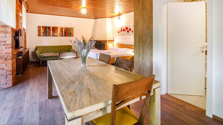 Die Wohneinheiten im Danilo's Resort, Vipavska dolina sind modern und komfortabel eingerichtet und bieten alles, was Sie für einen angenehmen Aufenthalt benötigen. Jedes Apartment verfügt über eine voll ausgestattete Küche mit Esstisch, einen Flachbild-Sat-TV und ein eigenes Bad mit Dusche und kostenfreien Pflegeprodukten. Zusätzliche Annehmlichkeiten wie ein Kühlschrank, eine Mikrowelle, ein Kochfeld, eine Kaffeemaschine und ein Wasserkocher sorgen für zusätzlichen Komfort während Ihres Aufenthalts.